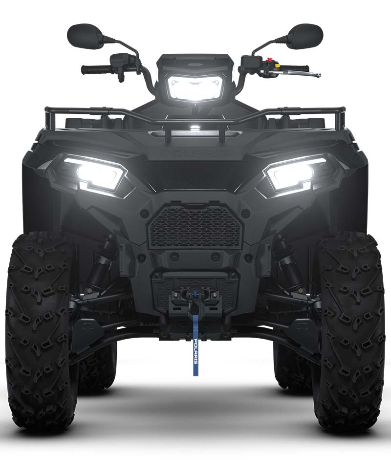 - 3 kjøremoduser: Standard/arbeid/ytelse. 12 V støpsel, ladeport for arbeidslys, hånd- og tommelvarmere inkludert, DEFA-varmer for motorblokk, PIN-aktivert sikkerhetssystem (P.A.S.S.). 1588 kg vinsj med syntetisk tau og NY automatisk stopp. Bagasjebrettforlenger foran, lastekasse, A-armbeskyttere foran og bak, lakkert plast